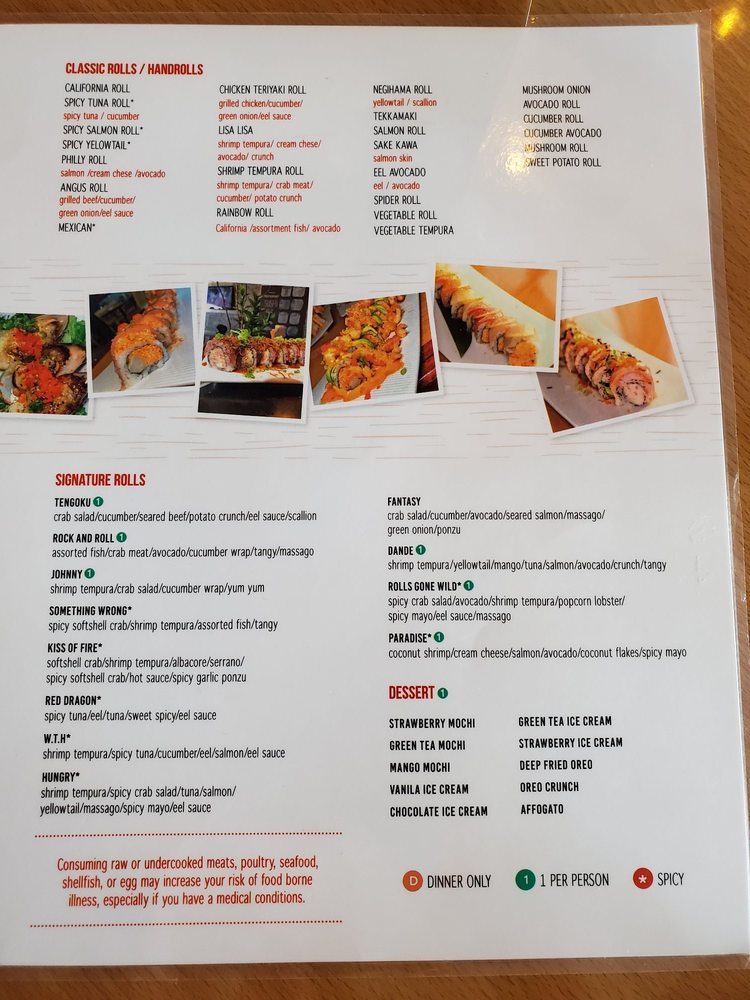 The menu features a rich array of options, from traditional Izakaya delights like Agedashi Tofu and Chicken Yakitori to an enticing selection of sushi rolls. Signature dishes include the Angus Roll and the refreshing Mexican Roll, both highly praised by guests. For those seeking heartier meals, offerings like Chicken Katsu Curry and the Tengoku Bento Box promise satisfaction.